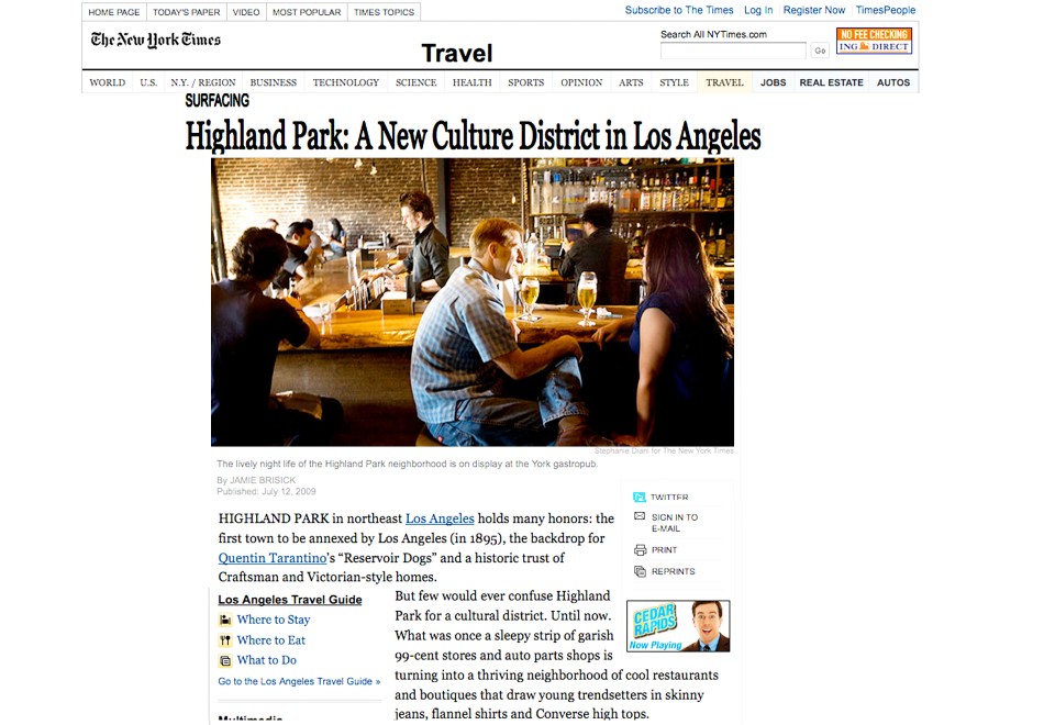 Highland Park, which my realtor claims is the “SilverLake of 2013” is a beautiful neighborhood that has always been a bit square. Kind of place you only went to visit your grandmother in law. I bet prop 8 got a lot of votes from here. lately though all the hipsters and creative professionals have been moving East because the rents are good and you can still get a house for 300K.