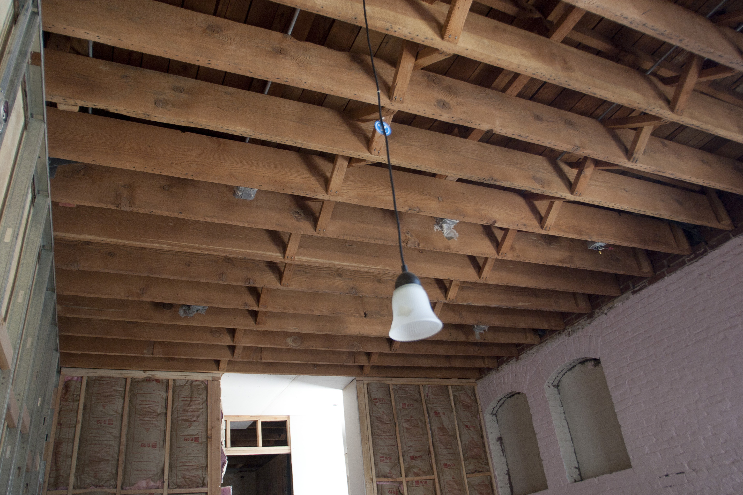 The framing inspector has signed off on the walls! Now we have permission to put our restaurant together. Next up sand blasting! After weeks of experimentation and consultation Riaz and I decided to grind the kitchen floor by hand. This took hours and created a biblical cloud of dust.