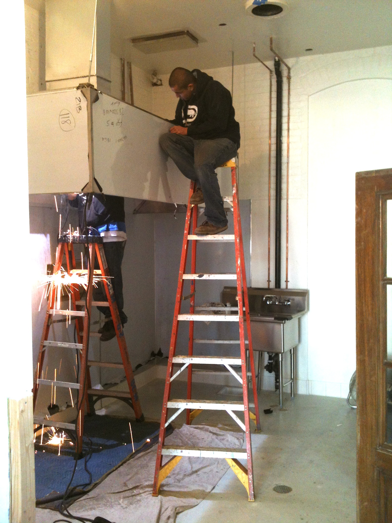 With the tile in, work began on the exhaust hood in the kitchen. As soon as it is finished I get to buy a stove!!!!