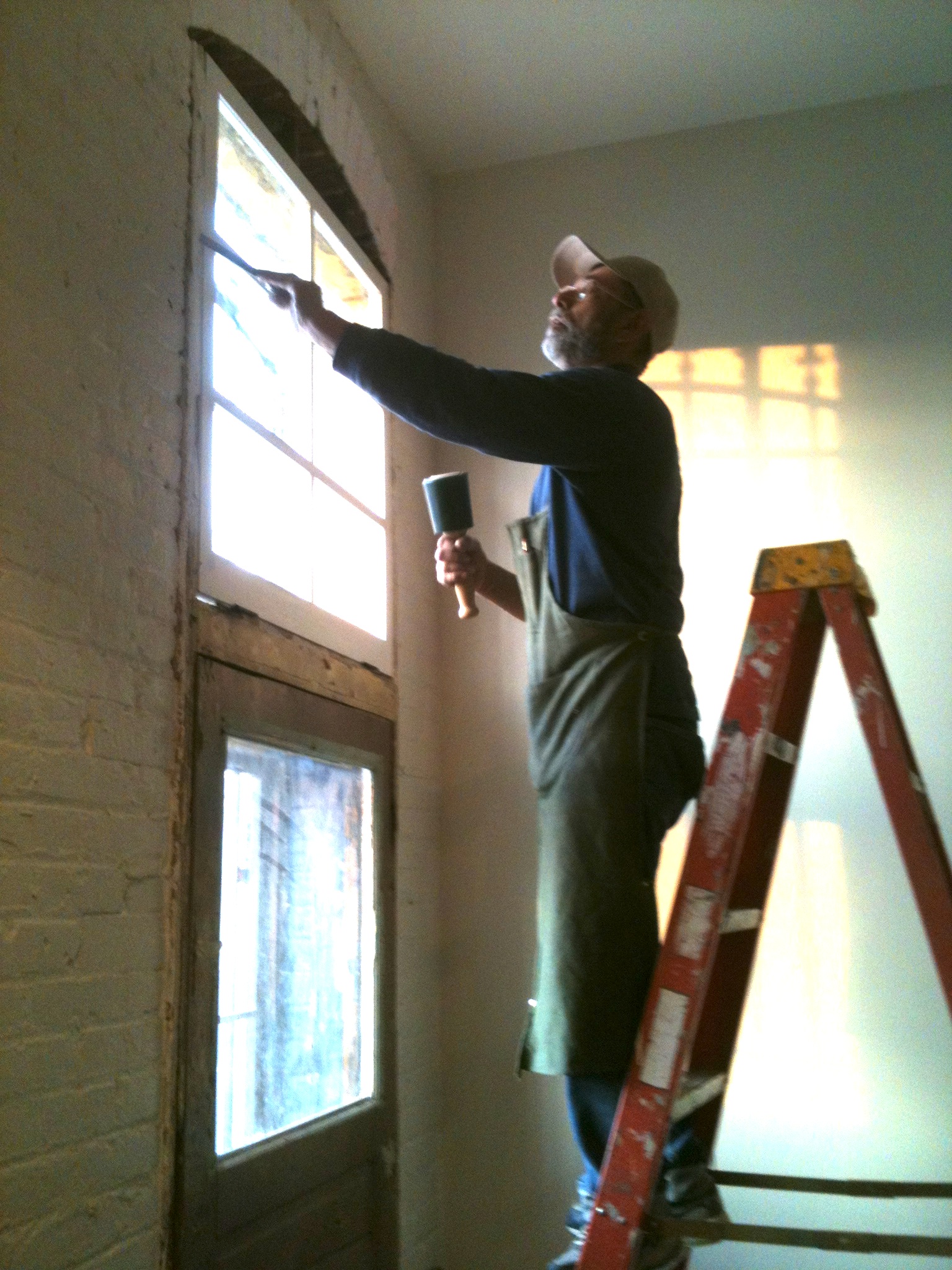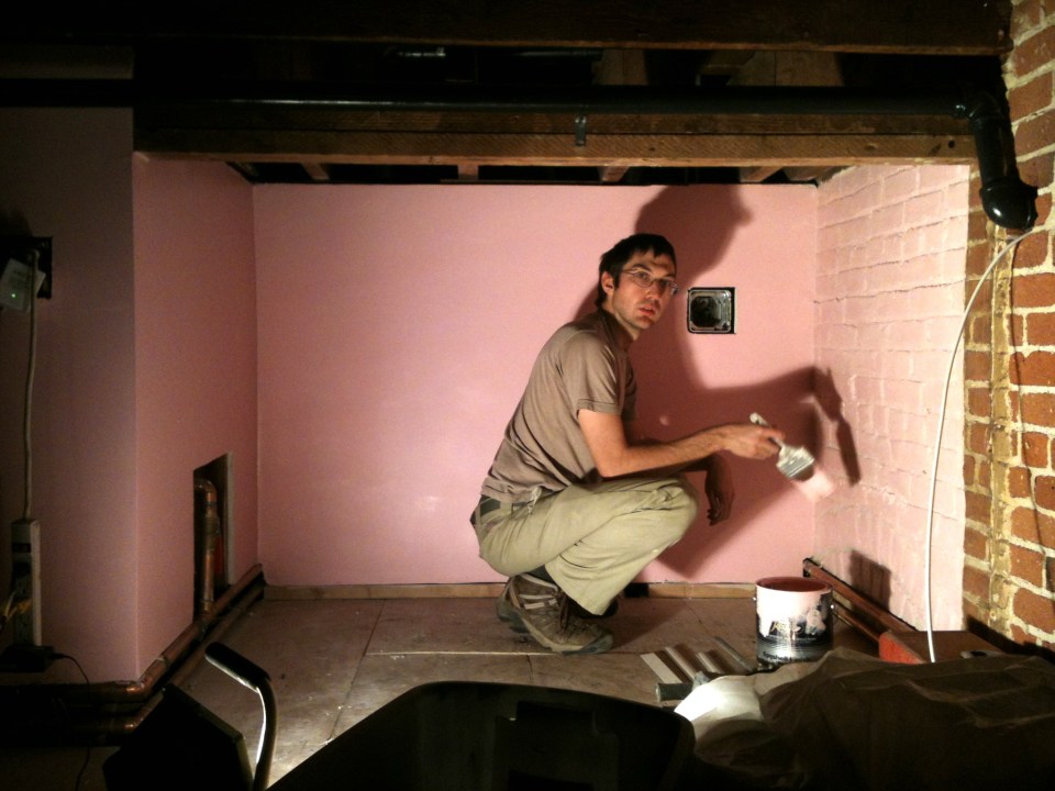 Celebrity guest crew this weekend included Aaron Shepard, who did a ceramic tile installation in the kitchen and Bathrooms, Matt Dressler who did a Donald Judd-esqu steel column in the front. Colin O’Mara-Green, and katy H. who painted the loft. Robert Espinoza came and installed the beautiful windows he crafted for us.
